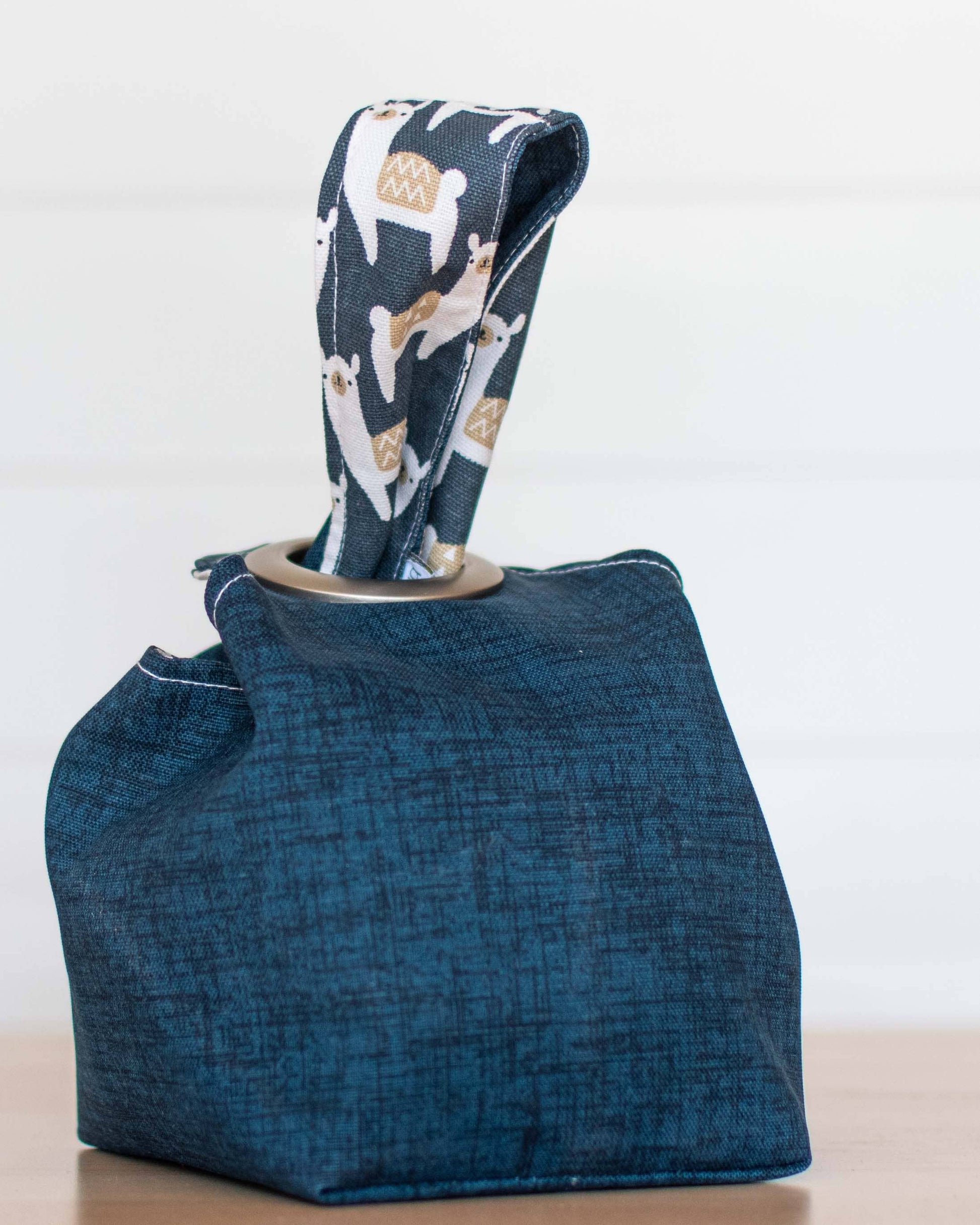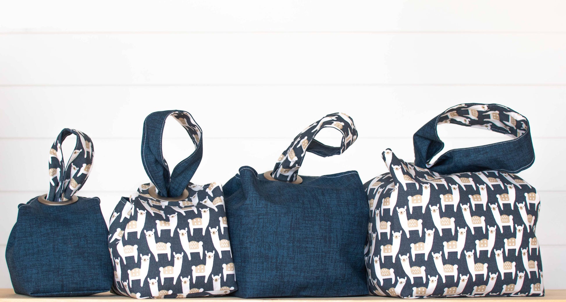 With no zippers or velcro, the Dumpling Bag provides a quick snag-free closure. Simply pull the handle through the grommet, and voilà ! Closed up and ready to go.
