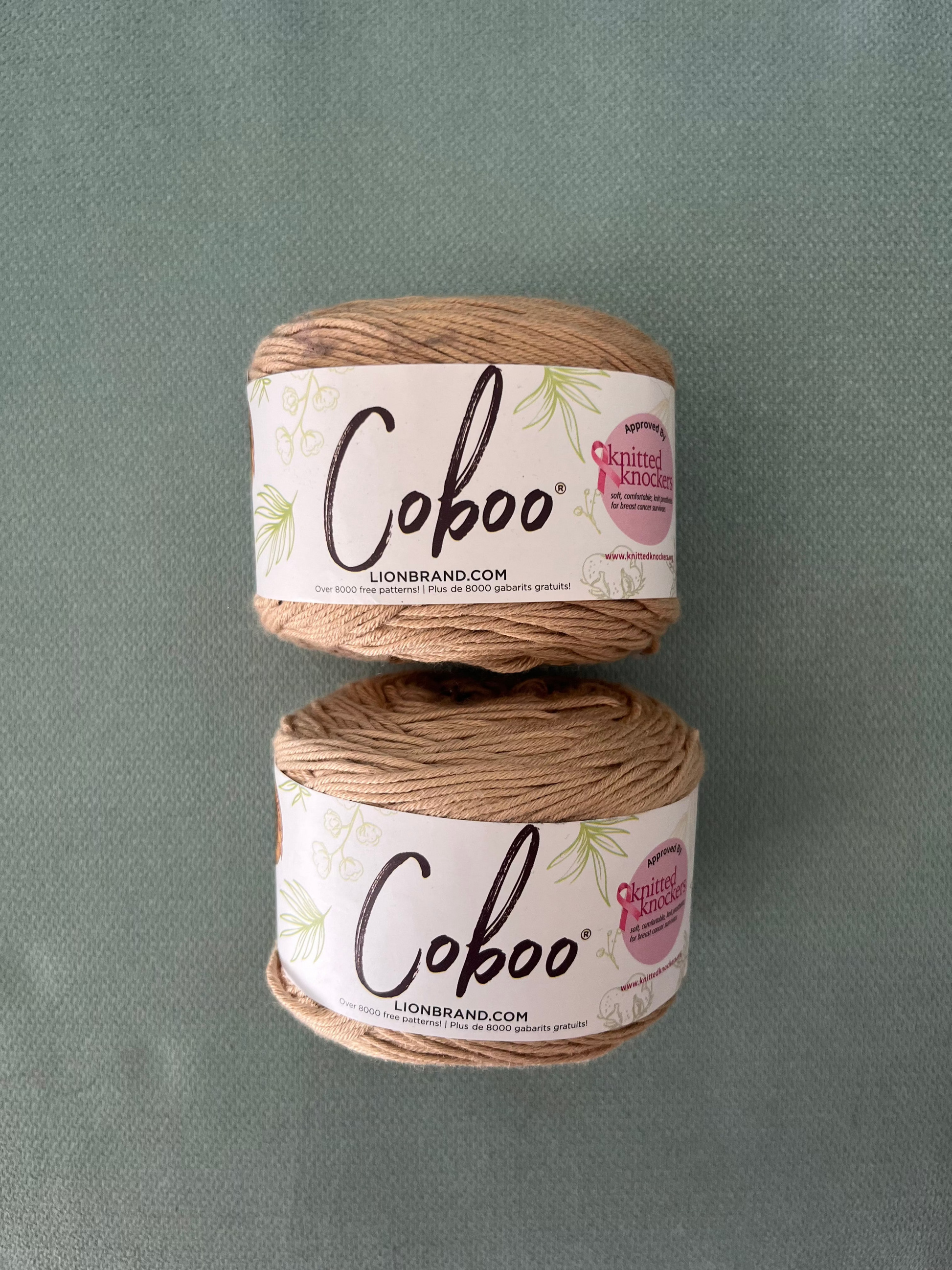 The iconic Lion Brand Coboo is one of our best sellers, and there's no doubt why. It is one of the softest, breathable, effortless yarns to work with. Its blend of bamboo and cotton fibers is why it is one of the choice yarns for Knitted Knockers. Its comfortable nature makes it a no-brainer for every garment, adding definition to every stitch, a gentle drape to each row, and adds texture to even the most simple pieces.