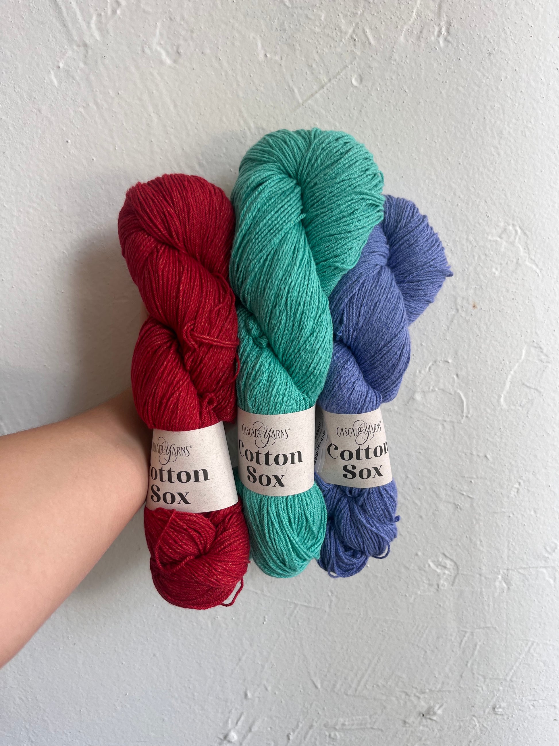 Cotton Sox is a beautiful blend of Cotton and Nylon, that is perfect for your next sock project.
