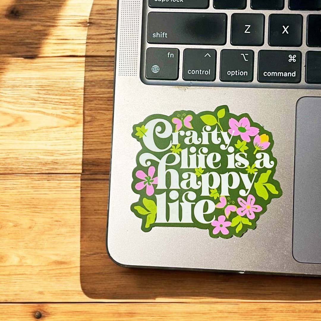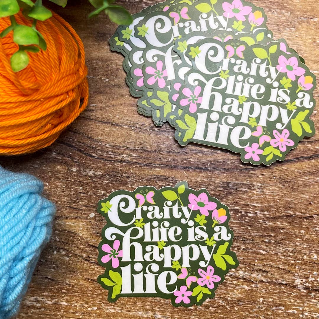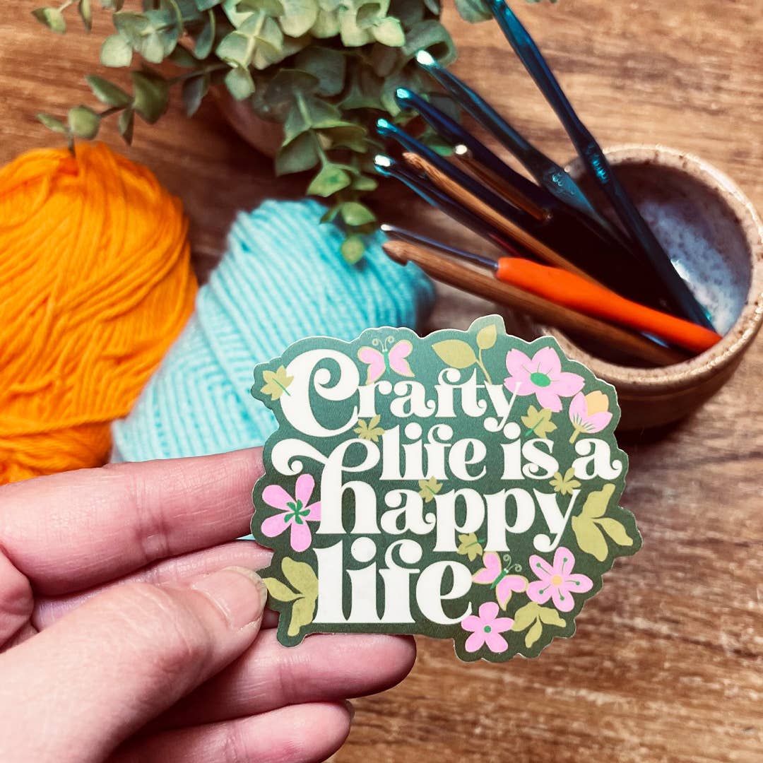 Celebrate your love for all things crafty with this beautifully designed sticker! Featuring the uplifting phrase "Crafty Life Is A Happy Life" surrounded by vibrant floral accents, this sticker is perfect for crafters of all kinds. Show off your creative spirit or gift it to the craft lover in your life! Add this sticker to your collection and spread the joy of a crafty lifestyle. This cool sticker is the perfect addition to any crochet and knit enthusiasts' laptop, water bottle, car window, notebook or even travel bags! It's a fun way to show off your love of your craft and looks great wherever you put it.
