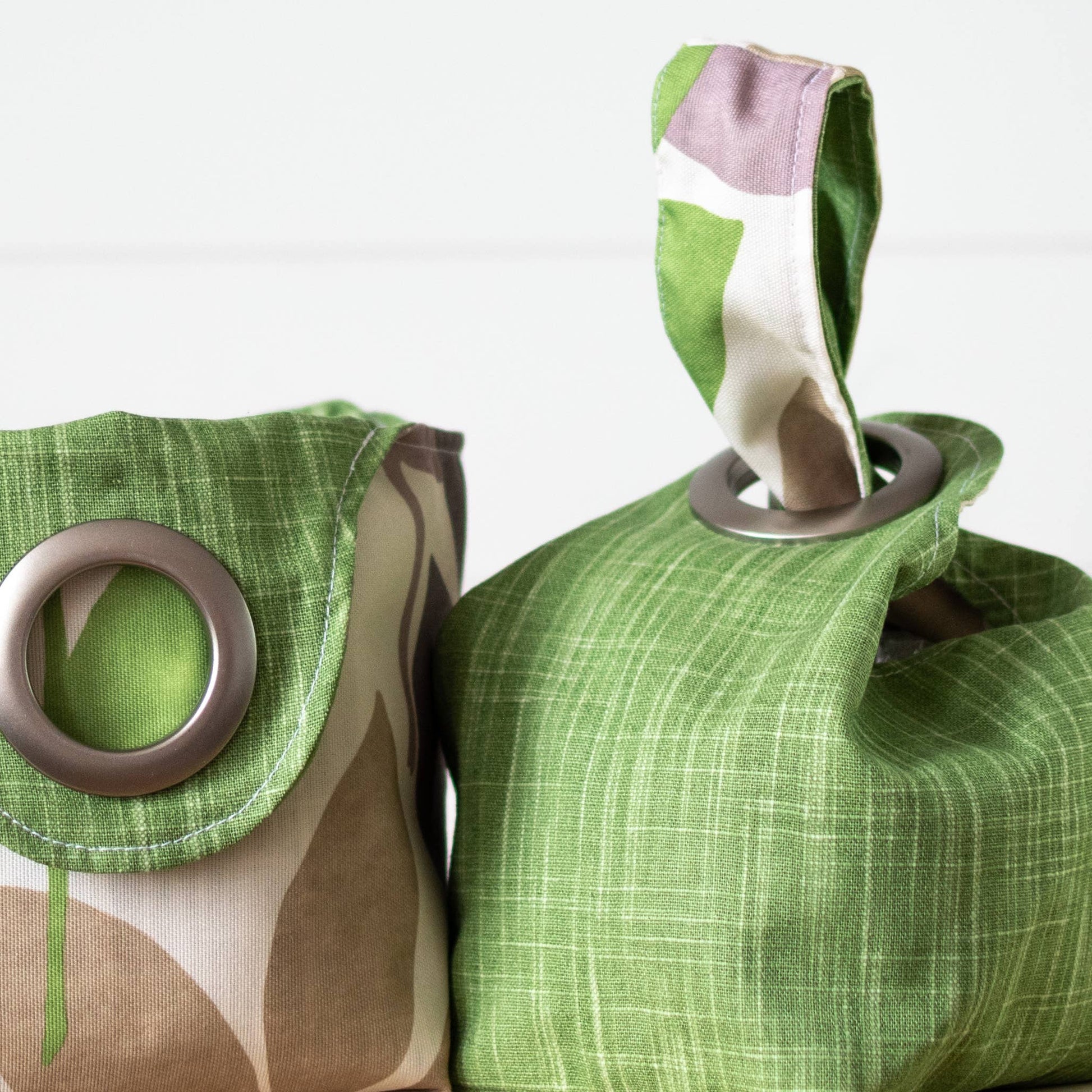 -Fabrics: (leaves) 100% poly outdoor fabric, (green) 100% cotton canvas
