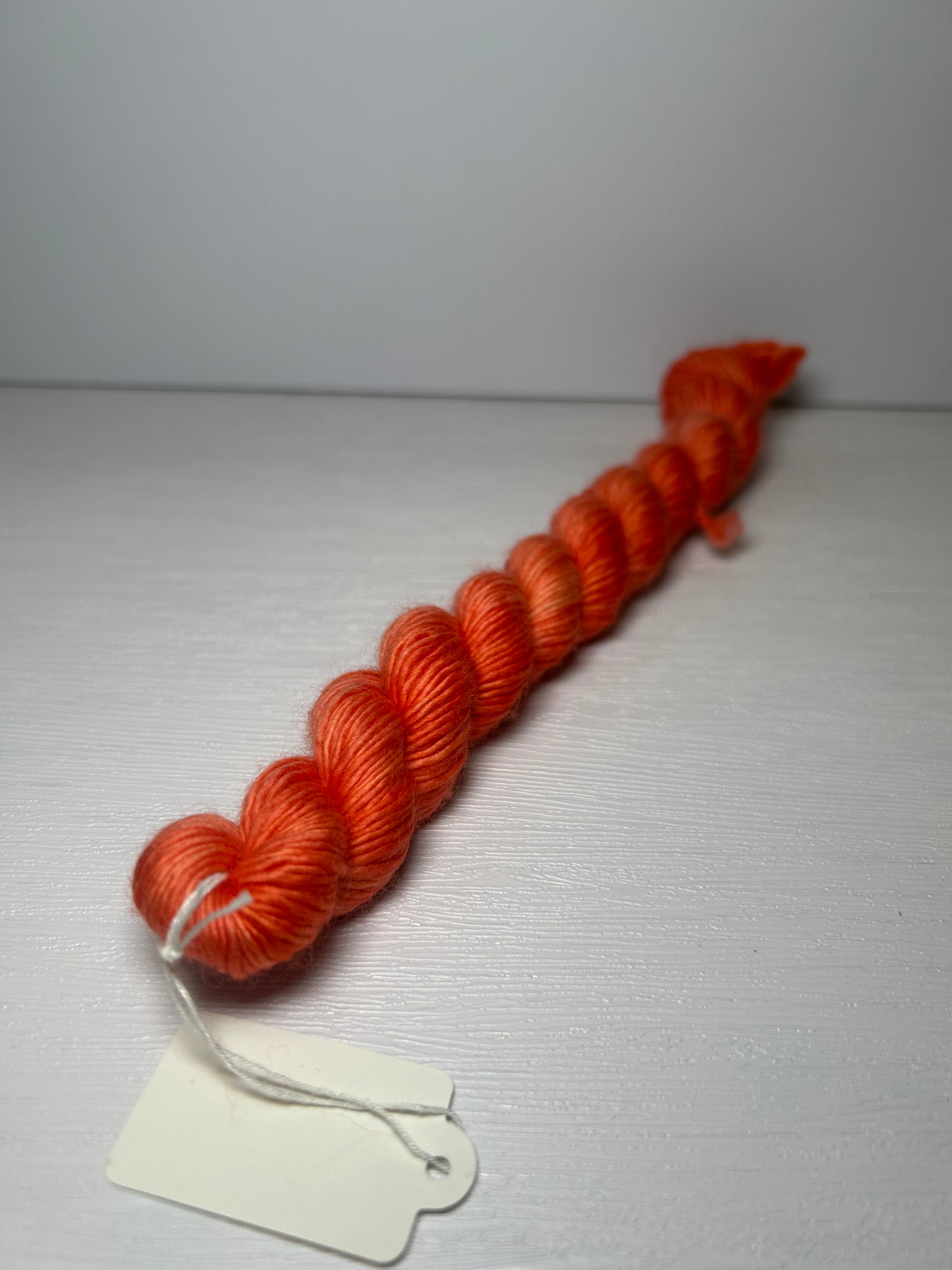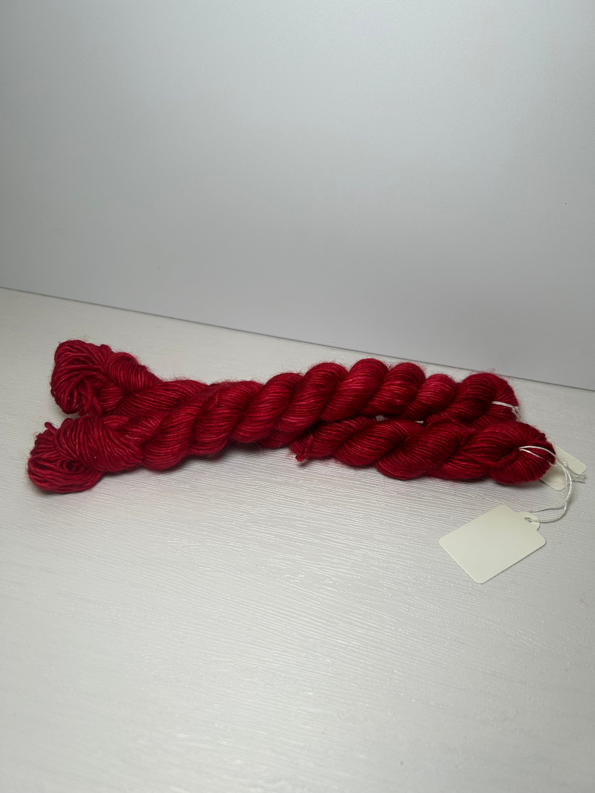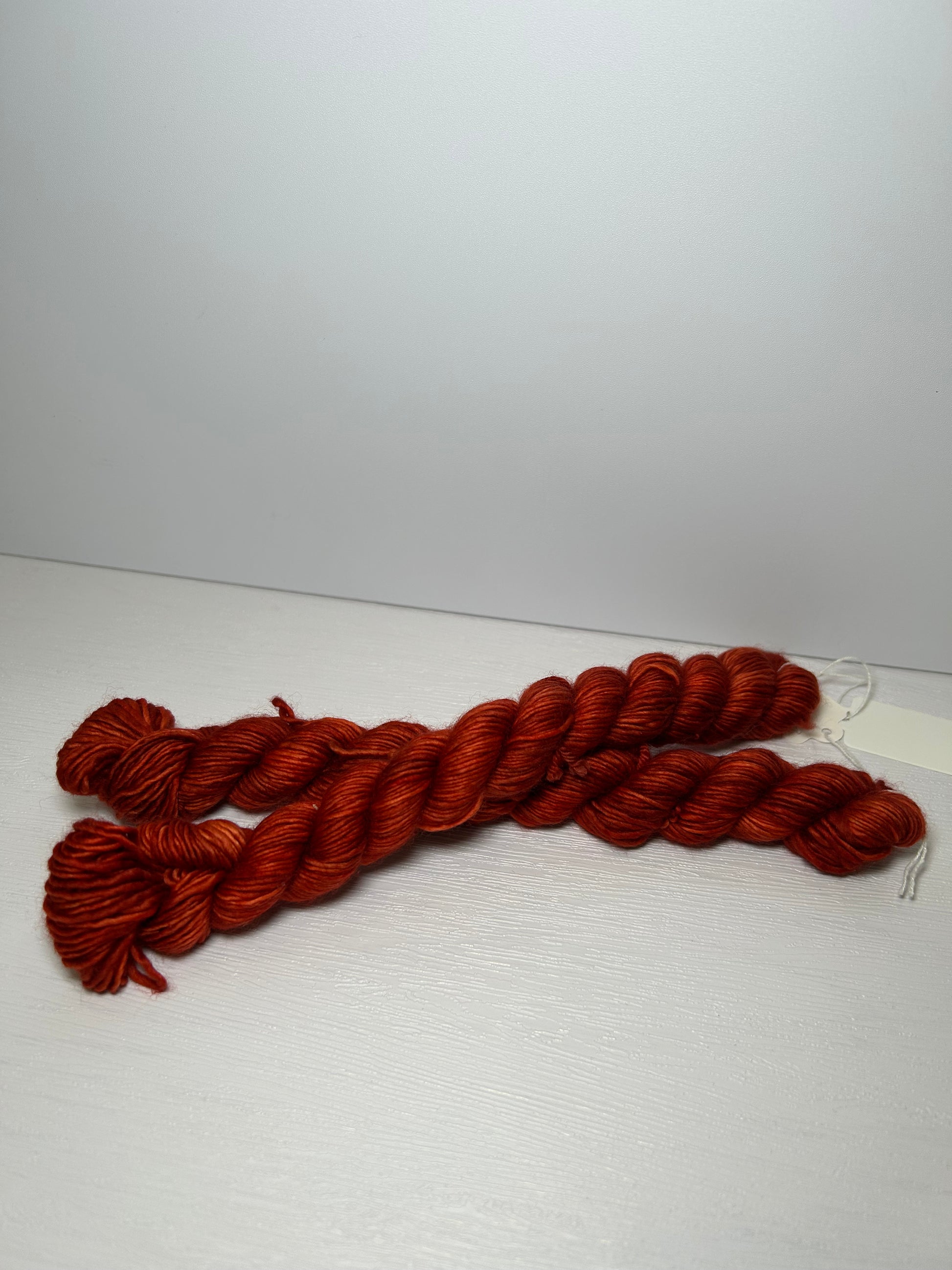 Hand-dyed 100% Merino Superwash Minis by Theodora's Pearls.  These 85 yard skeins are dyed in rich and luxurious colors - perfect to add a splash of color to your project or combine complementary mini skeins to create a lovely garment.