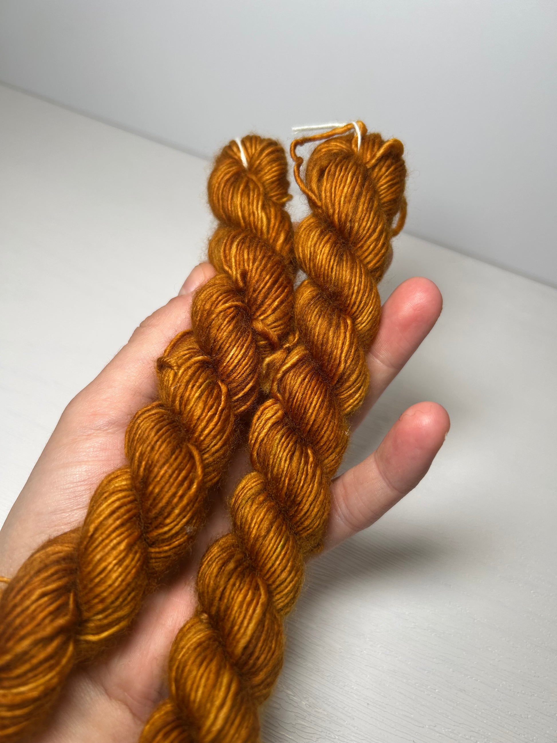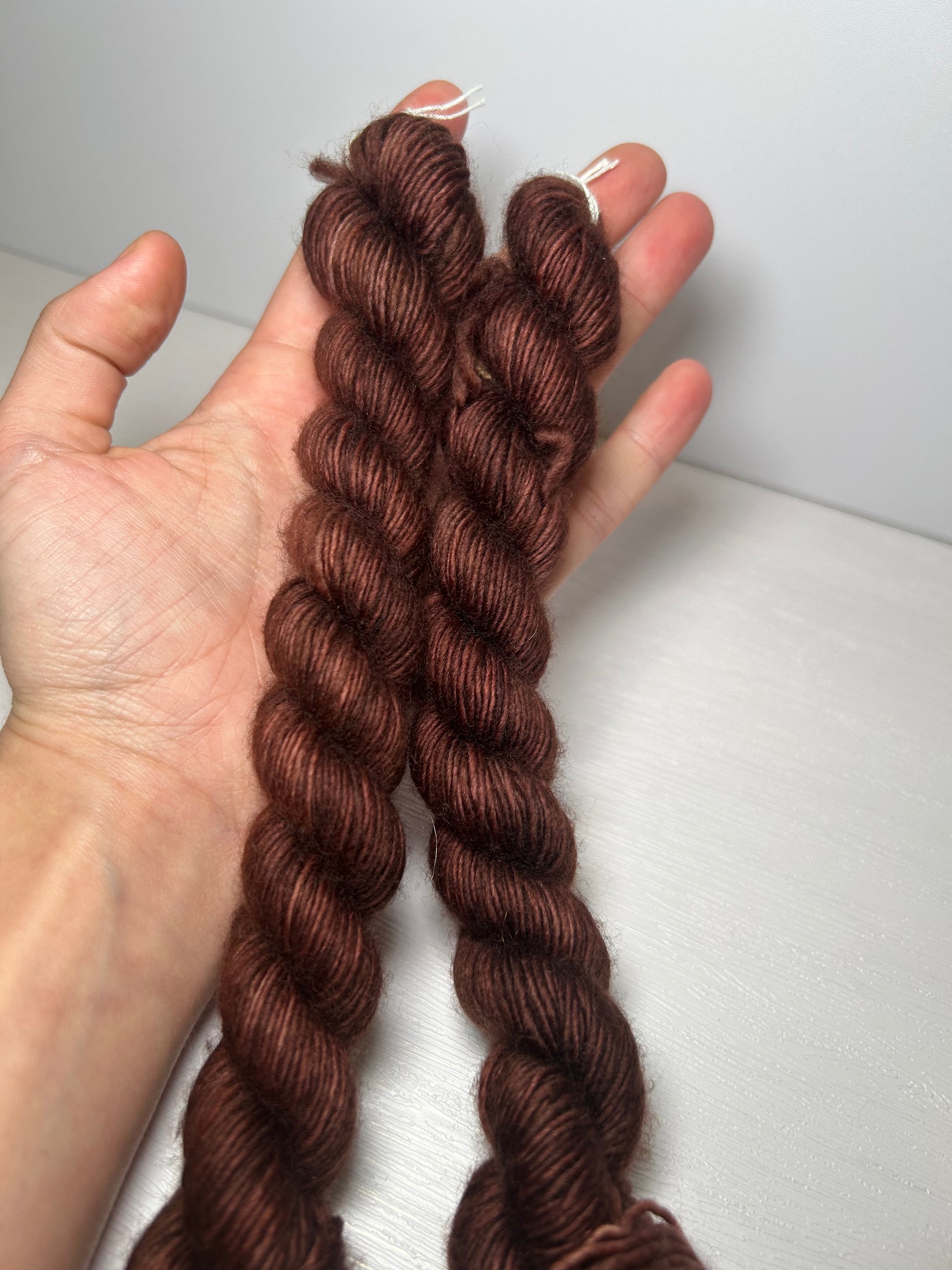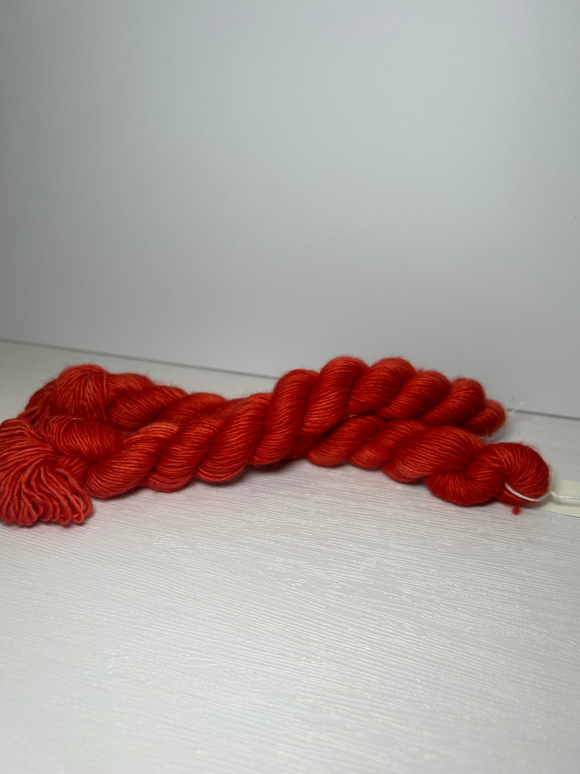 Hand-dyed 100% Merino Superwash Minis by Theodora's Pearls.  These 85 yard skeins are dyed in rich and luxurious colors - perfect to add a splash of color to your project or combine complementary mini skeins to create a lovely garment.