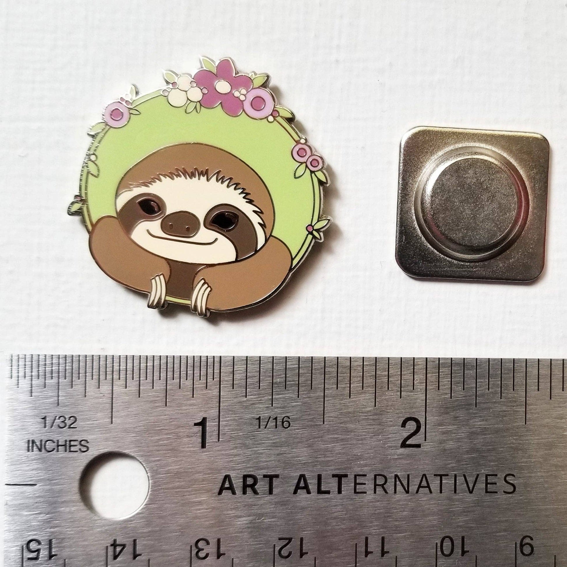 Keep track of your needles with this happy sloth needle minder! This sweet magnetic pin is 1.25 inches tall and is made of hard enamel with pretty raised silver colored plating. The back has a removable magnet for you to sandwich your needlework fabric.