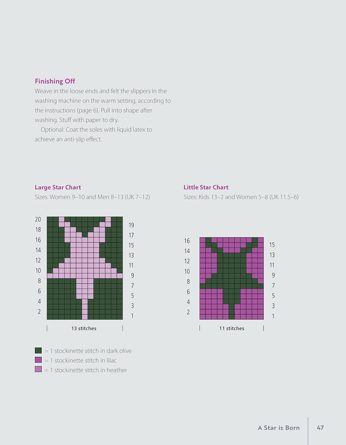 Felted pieces are more ridged, longer lasting, and more structured than traditional knit pieces, making the process ideal for creating customized, comfortable slippers. And better yet -- they are easy to make because they are knitted in a similar way to socks, only oversized -- with large needles and then felted in the washing machine. In Knitting and Felting Slippers, authors Sabine Abel, Annette Diepolder, and Karoline Hoffmeister guide you through the process to create 23 charming felt slippers for adults and children with well-detailed techniques, step-by-step instructions, and finishing details including heel seaming and cap heeled slippers. Once the slippers have been knitted, the washing machine does the rest of the work. The hot water and agitation cause the fibers to become matted and shrunk to the appropriate size. Paperback, 96 Pages
