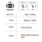 Re-Spun Bonus Bundle® is an award-winning sustainable yarn made from 100% recycled polyester, keeping waste out of landfills while delivering soft, medium-weight fibers. This eco-friendly yarn is perfect for knitted and crocheted sweaters, blankets, and home décor, offering durability and comfort. With 658 yards per skein and machine-washable care, it’s the ideal choice for sustainable crafting.