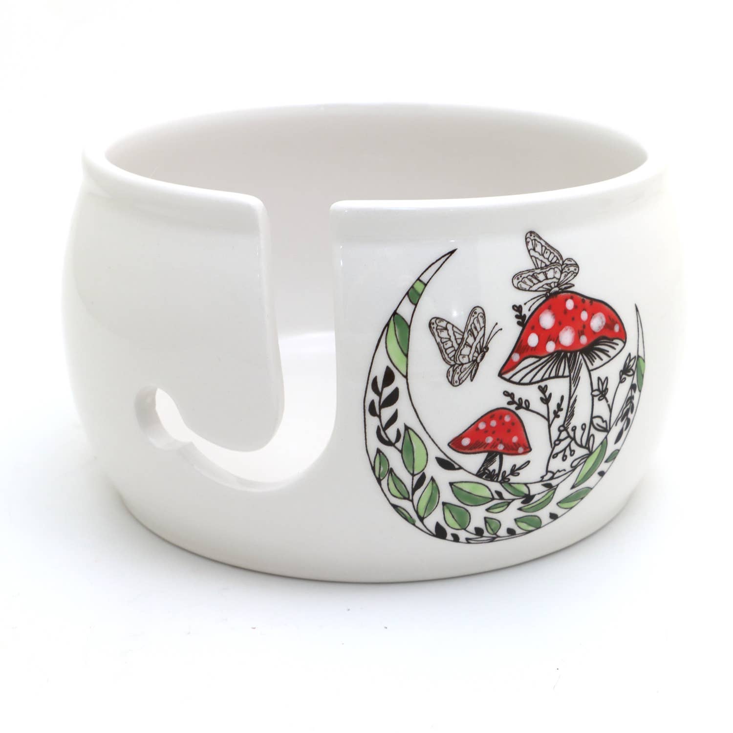 Yarn bowls are a great way to keep yarn from getting tangled and to store work in progress. This incredible red and white mushroom woodland themed ceramic yarn bowl is the perfect one for the whimsical, nature obsessed crafter who weaves magic with every stitch.