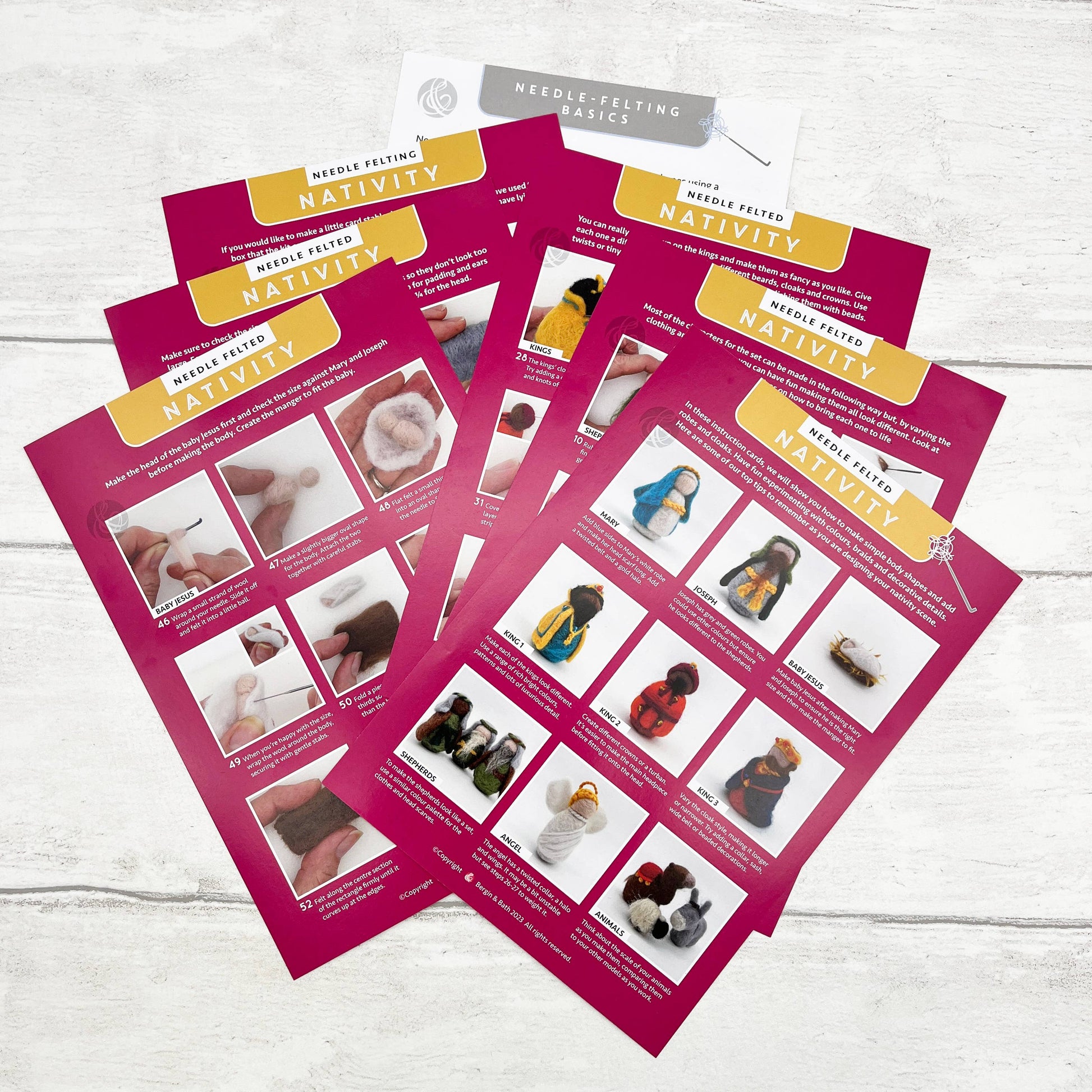 This premium needle felting starter kit packed full of high-quality, cruelty-free natural wool and SIX sets of instructions. This is a perfect project for the run up to Christmas! Give as a gift, make it yourself or turn it into a fun project to complete with family and friends over the festive period. This nativity set is a wonderful addition to your festive decorations and will be a delight to take out year after year. Packaged in a stylish display box, this kit contains a beautiful selection of natural wool fibres, hand-selected for making all the characters and sweet little creatures in this wonderful nativity set. Six sets of step-by-step photographic instructions show you how to make Mary and Joseph, baby Jesus in a manger, the three kings and their gifts of gold, frankincense and myrrh, a group of shepherds with their little flock of sheep, a camel and a donkey   WARNING Product contains sharp needles and small parts. Anyone under the age of 14 must be supervised by an adult