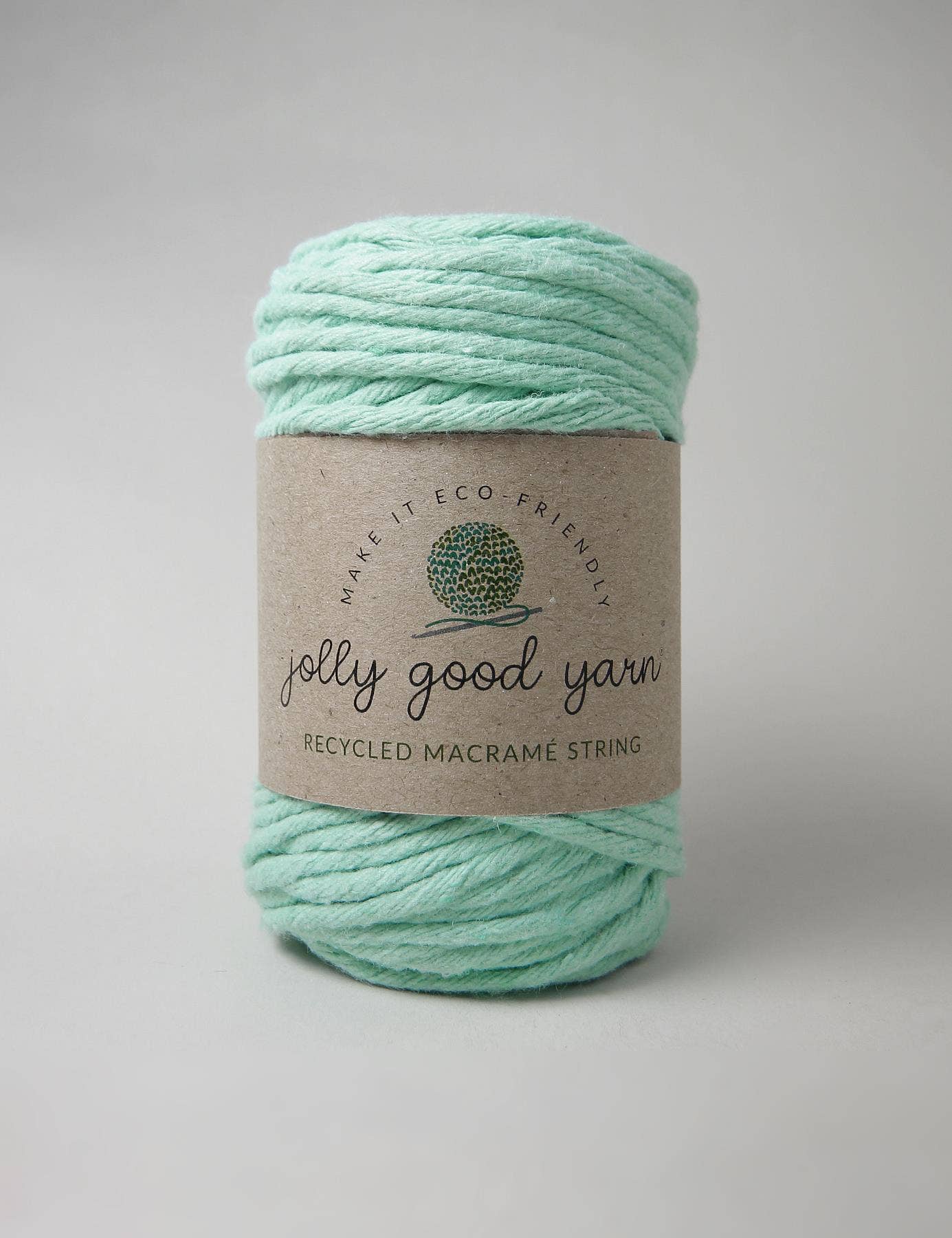 3mm Pennymoor Mint is a gorgeous, eco-friendly single twist macrame string from Devon-based Jolly Good Yarn. The yarn is created by upcycling left-over textiles from manufacturing, as well as clothes that may have otherwise gone to landfill.