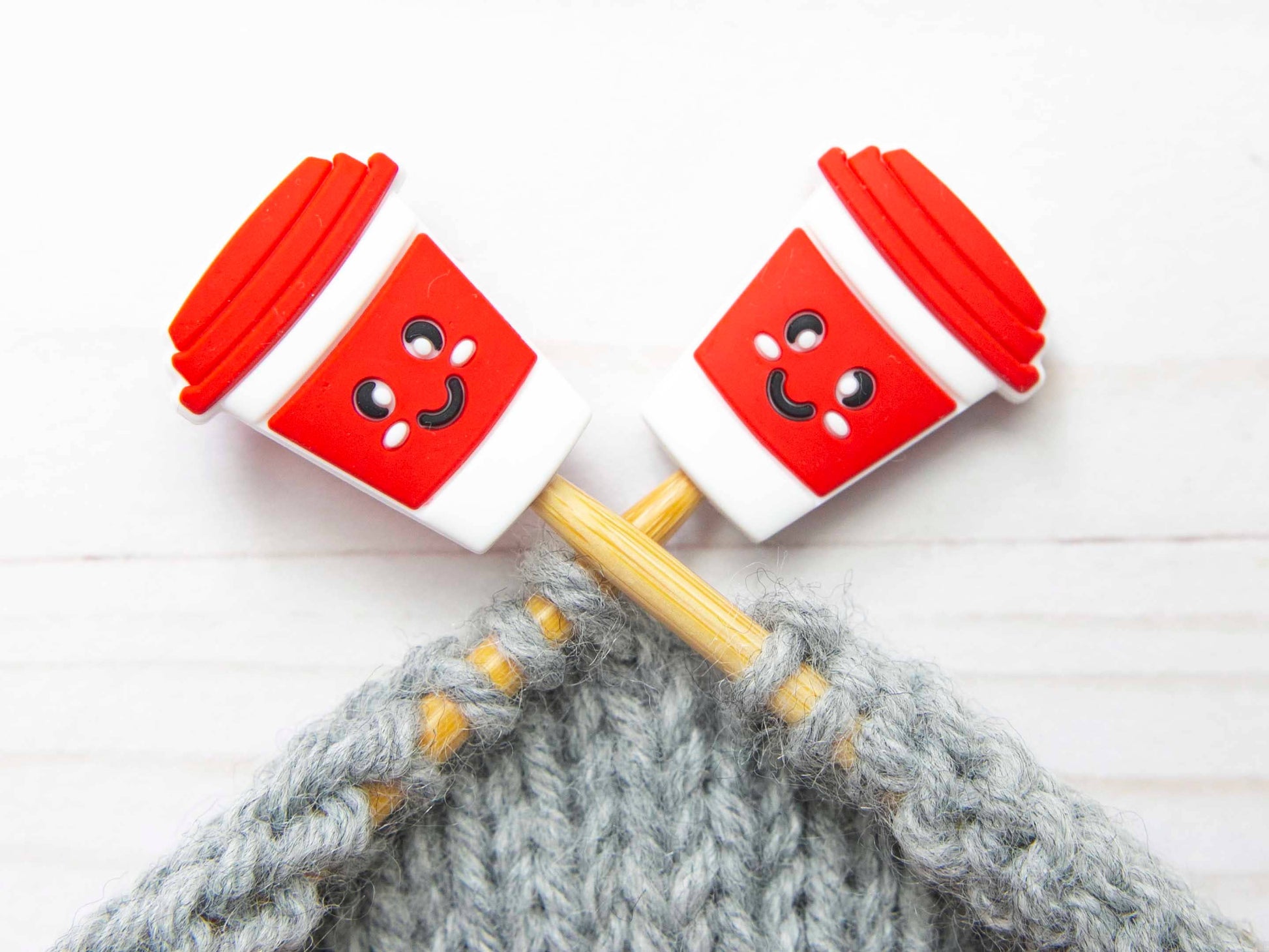 This set of stitch stoppers comes in a pair of two red coffee cups.