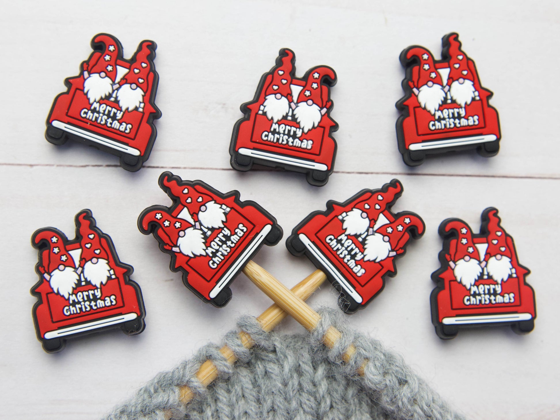 This set of stitch stoppers comes in a pair of two red gnomes. To me, they give little Santa vibes!