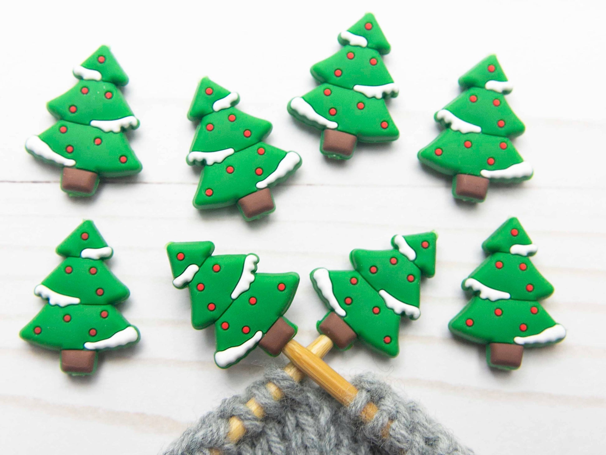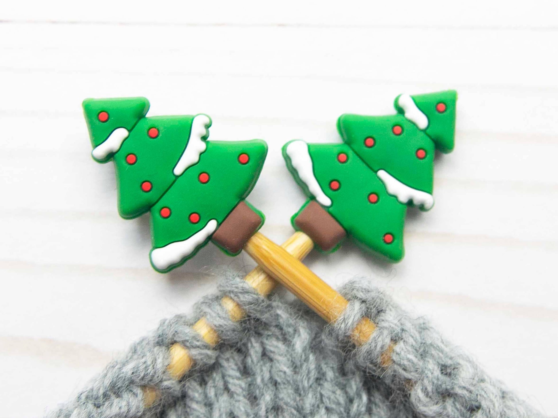 This set of stitch stoppers comes in a pair of two snowy trees.