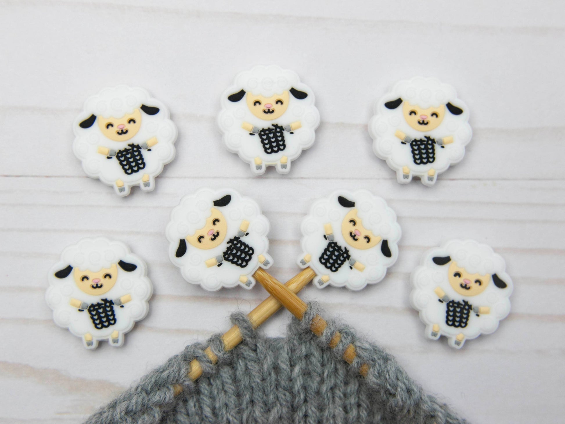 This set of stitch stoppers comes in a pair of two white knitting sheep.