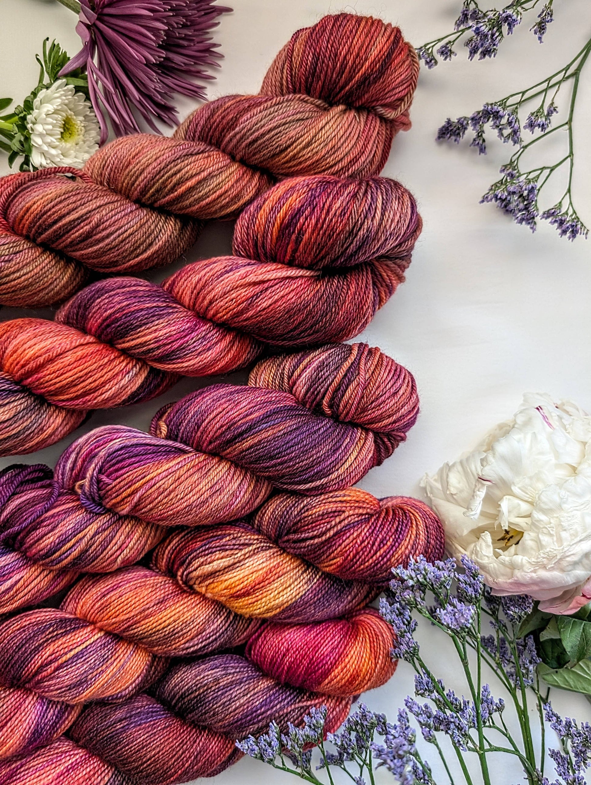 Introducing the Yosemite from the National Park Poster Collection! Yosemite is a purple/pink/orange variegated yarn. All yarn is hand dyed in small batches. Variegated yarns will have small deviations between skeins, as expected from hand dyed yarn.