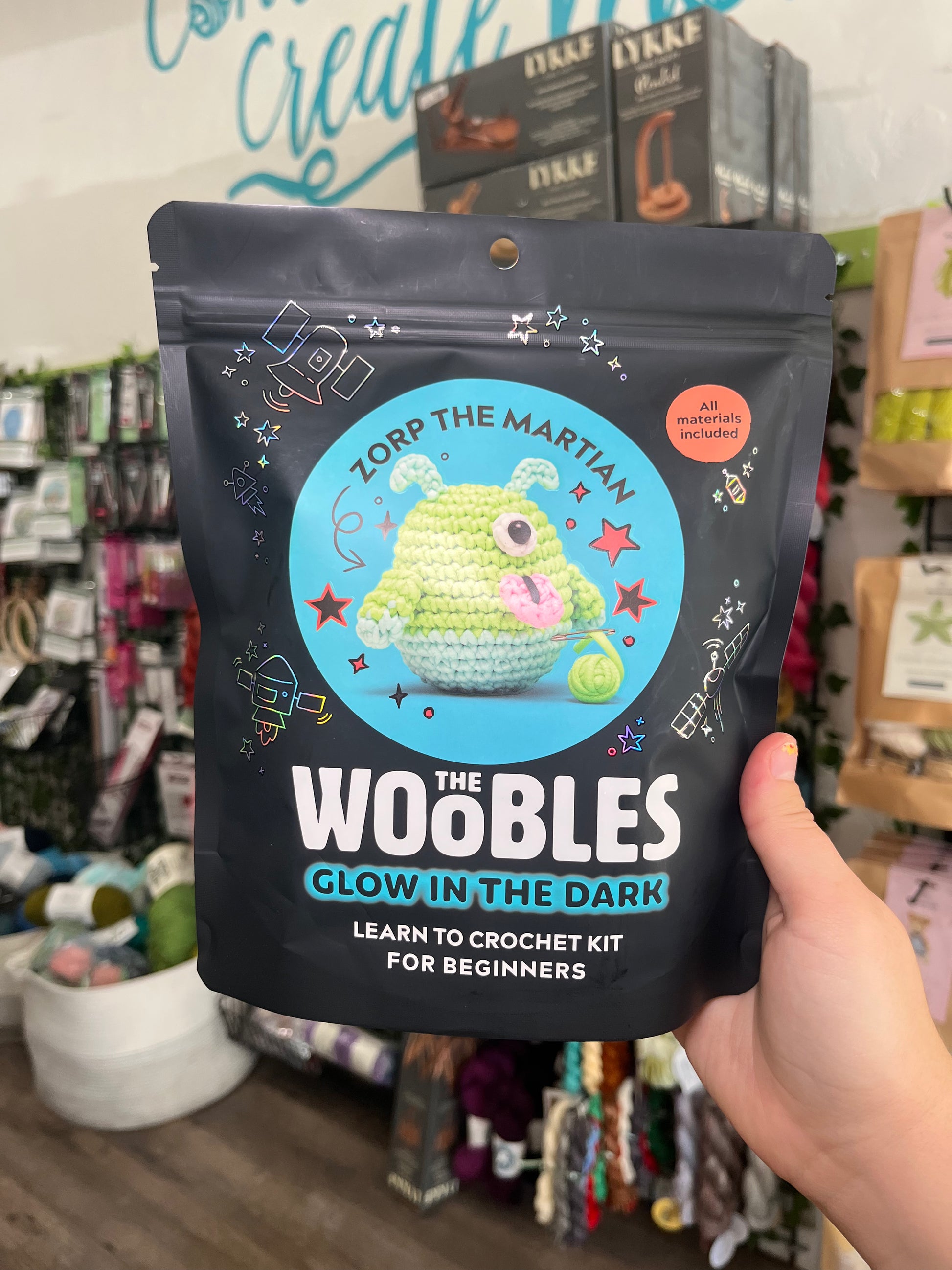Introducing Zorp the Martian - The Woobles Martian Crochet Kit. The Woobles Martian Crochet Kit is perfect for beginners! The kit includes all the materials you need, plus step-by-step video tutorials that expertly guide you through each stitch and technique that matches the kit in your hands. These tutorials take the stress out of starting a new project, to dive straight into the fun!